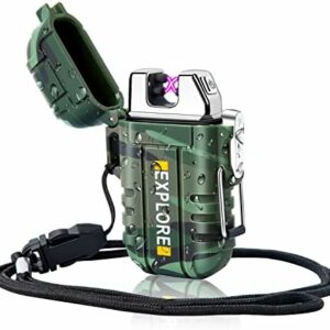 LcFun Waterproof Lighter Outdoor Windproof Lighter Dual Arc Lighter Electric Lighters USB Rechargeable-Flameless-Plasma Cool Lighters for Camping, Hiking, Adventure, Survival Tactical Gear