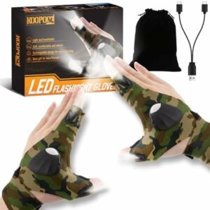 LED Rechargeable Flashlight Gloves Outdoor Fishing Gloves Tools Glove Lights Finger Unique Cool Gadgets Gifts Idea & Valentines Day Gifts Stocking Stuffers for Men, Him, Dad, Father, Husband